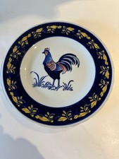This charming ceramic plate features a vibrant rooster design, symbolizing good luck, prosperity, and fortune in traditional culture. Subject: Rooster / Symbolic Animal. Design: Vibrant Rooster Motif.