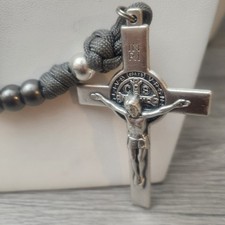Rosary San Benito/Jesus Crist Knotted Corded Beads Crucifix Silver Catholic