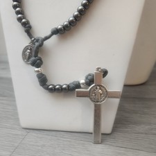 Invigorate your spirit with this meticulously crafted rosary. Featuring intricately knotted corded sections and smooth, polished beads, this piece showcases a striking silver-tone crucifix with detailed imagery. The design also incorporates a medal of Saint Benedict, adding a layer of historical and spiritual depth. A testament to quality and devotion, it's perfect for daily prayer, meditation, or as a meaningful gift for religious occasions and personal milestones. Measurements: • Cross length: Approximately 2 inches Keywords: rosary, San Benito, crucifix, Catholic, religious, prayer beads, knotted rosary, corded rosary, Italy, spiritual jewelry, medal, Saint Benedict, silver tone