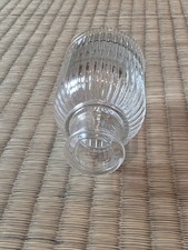 The product is a 4-inch clear ribbed glass bottle, perfect for collectors or those looking to add a modern and sleek piece to their collection. The clear color adds a touch of elegance to any display or decor, making it a versatile and stylish addition to any space. Ideal for storing or displaying various items, this modern bottle is a practical and visually appealing choice for any collector or enthusiast.