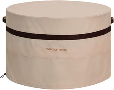Windproof & Easy Pull on/off Fire Bowl Covers Round : 2 adjustable drawstring at the hem makes the fire pit cover fit snugly. The double durable handle design make it easy to place on or take off. Made of waterproof 600D fabric with PVC waterproof coating,ensures superior performance in all seasons.