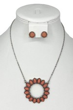 Round Floral Gem Pendant Necklace Set