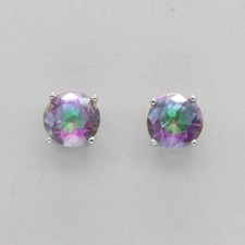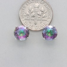 Round Rainbow MYSTIC TOPAZ Circle Post / Stud Earrings 925 STERLING SILVER 901e
