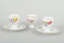 Royal Copenhagen, Saxon Flower. Three porcelain egg cups. C. 1900.