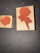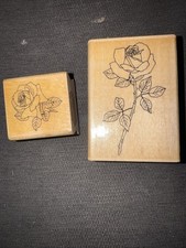 This lot includes two rubber stamp flower designs featuring long stemmed roses. The stamps are mounted and created in the United States, making them of high quality and authentic. The theme of flowers and plants adds a beautiful and natural touch to any crafting or stamping project. The rubber material ensures a clear and detailed impression, perfect for adding a floral background to any design.