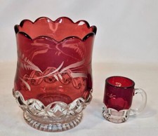 Ruby Flashed Glass Spooner and Mini Souvenir Mug Etched to Clear