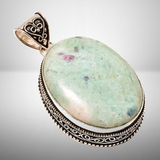 Ruby In Fuchsite Gemstone 925 Sterling Silver Vintage Style Pendant 2.17" A539