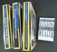 This lot contains Russ Whitney Building Wealth through Real Estate Books and Courses. Included are: "Building Wealth Book", "Building Wealth System" Course, Starting From Zero" Course, and "Comminication, Negotiation & Salesmanship" Course. Courses include VHS tapes, CDs, books, etc. Everything looks to be new and unused condition. Plan on $20 for shipping...we will refund the difference if shipping is less. We will not ship overseas.