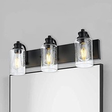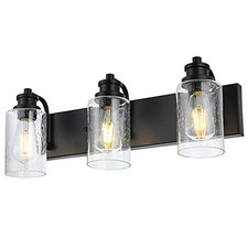 s Black Vanity Light Fixtures Over Mirror with 3 Light Seedy Glass