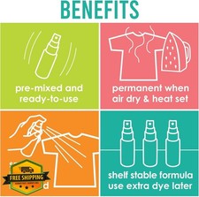 No Soda Ash Needed: Skip the soda ash! Assembled in the USA! Versatile Spray Fabric Dye: Works on various materials; ideal for quick tie dye projects on fabric, lace, ribbon, trims, dried flowers, and more - clothing dye supplies for all your creative needs.