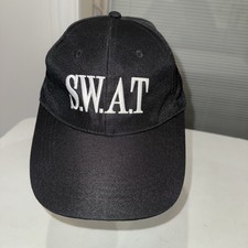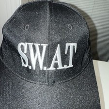 S.W.A.T. White Letters on Black Nylon Poly Hat Cap Hook Loop EUC additional preview