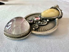 Sajen Sterling Silver Moon Face Goddess Pendant Brooch w Quartz,Amethyst,Peridot