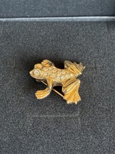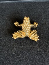 SAL SWAROVSKI Frog Toad Crystal Gold Tone Rhinestone Pin Brooch Authentic Signed