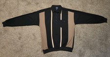 Salmon River Traders Vintage 90s Men's Dressy Casual Long Sleeve Shirt with Two Knit Panels in XLT size. Lightly worn. Black and tan color. Pullover with buttons. Two Knit Panels in front. Waist is lightly banded at the bottom. You can tuck it in if you're so inclined, though. Sleeves are also banded. Unique and original piece of men's vintage clothing. Made from 65% polyester and 35% cotton material. Enhance your wardrobe with some high-quality and fashionable retro! Please allow two business days to ship, though usually quicker. Thanks for reading!