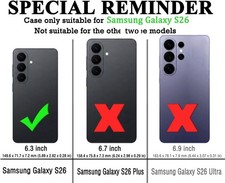 Compatible with Samsung Galaxy S26 (not for S26 Edge/S26 Ultra). Made from shock-absorbing, shatterproof TPU and Polycarbonate materials. Reinforced corners and raised edges provide excellent screen protection.