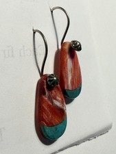 Santo Domingo Spiny Oyster Turquoise Slab SS Pear Shape Drop Earrings 1.25”