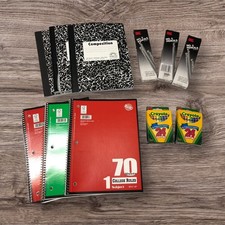 School Essentials Supplies Bundle Kit Notebooks Pencils Crayons Student Home