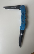 Schrade Timer Folding Serrated/straight Back Blade Blue