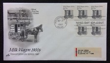 Milk Wagon. Stamp: Strip of 3 plus strip of 2. Cachet: Art Craft. Series: Transportation. What you see is what you will receive.