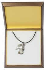 Scottish terrier, Scottish terrier - dog collar in gift box, silver-plated medallion for dog fans, striking pendant from the Art-Dog brand The dog necklace in a gift box is a Polish product created for four-legged lovers. The impressive medallion in the shape of a dog's head made of high-quality zinc and aluminum alloy shows attention to detail and precise workmanship. The pendant on a ribbon with a silver clasp is the perfect accessory for dog moms and dads. Decorated with a layer of silver, this elegant piece of jewelry is durable and resistant to damage, so you will enjoy it for many years. Our necklaces are sure to bring a lot of joy to dog lovers. They are perfect as a birthday gift, name day gift, and dozens of other occasions, such as adopting a new dog or as a reminder of the loss.