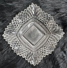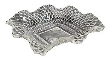 Serving Dish Bowl 7” Clear Glass Diamond Point Pattern Square Ruffle Atomic