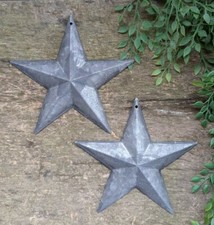 Set of 2 - 5.5" GALVANIZED BARN STAR Aged Antique Style Metal Tin Primitive