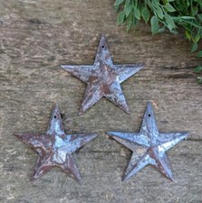 Set of 3 - 3.5" RUSTY GALVANIZED BARN STAR Aged Metal Tin Primitive Country