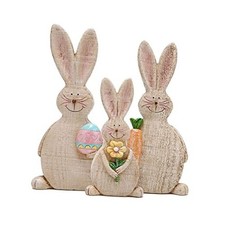 Set of 3 Easter Bunny Decorations Spring Rabbit Decors Figurines Brown-3