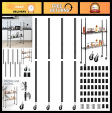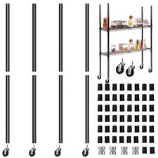Set of 4 Chrome Wire Shelving Poles with 50 Plastic Shelf Clips & Caster Wheels
