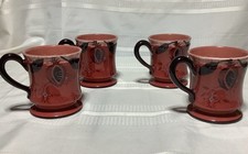 Set of 4 Tracy Porter Pomegranate Garden Ceramic Mugs, Fruit and Leaf Pattern, Holds 10 oz., 4” Tall, 3 1/2” Diameter, Discontinued. Excellent Condition.