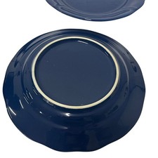 Set of five solid cobalt/deep navy blue plates with a softly scalloped rim and glossy finish. Unmarked (no maker stamp visible). SKU: 000.