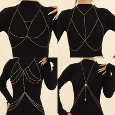 Sexy Ladies Party Tassel Body Chain Rhinestone Chest Necklace Bikini Waist Chain