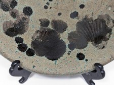 Unique Estate Sale find from Maine, this Studio Pottery Dish or Plate Dish features "Fossil" style shell imprints that are highlighted with spatters and pools of dark glossy glaze over matte gray with textural blue inclusions. No signature on the bottom of the piece which measures 7-1/2" in diameter with an asymmetrical 3/4" edge. It's in great condition with no cracks or chips noted. Please see all photos as they are part of the description and message with any questions prior to purchase. Thanks for looking!