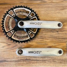 Here is a used Shimano Deore XT 9 speed FC-M751 crankset. Octalink V.2 bottom bracket interface. 170mm crank arm length. Octalink spindle interface and pedal threads are in perfect condition.