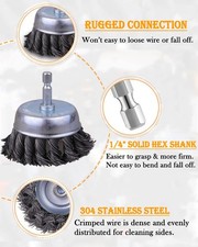 High-density uniform steel wire is tight and robust leaving a uniform, smooth surface. Satisfy Your Various Need - Include 4 Pcs wire brush wheel cup brush set,3" twist cup brush for large area heavy processing, 3" copper-plated wire cup brush for gentle grinding over large area, 1" knot pen brush for precise and thorough cleaning in hard-to-reach corners, and the 11" copper-plated pen brush for delicate sanding in hard-to-reach corners to remove residual stain.