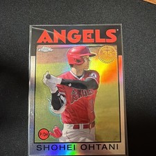 The product is a 2021 Topps Chrome Refractor 35th Anniversary trading card featuring Shohei Ohtani of the Los Angeles Angels. This standard-sized card is ungraded and in excellent condition, made of 20 pt. card stock. As part of the 1986 Topps Baseball insert set, this original card is a parallel variety with the card number 86BC-9. Perfect for fans of Major League Baseball and collectors of sports trading cards, this limited edition card celebrates the MLB World Series and showcases the talented player Shohei Ohtani. Card will be shipped in a secured top loader between cardboard inside of a bubble mailer.