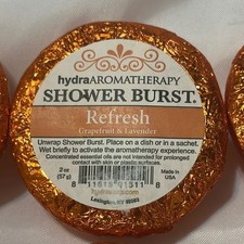Shower Burst Refresh Orange HydraAromatherapy Refresh Grapefruit & Lavender Elevate your shower experience with 's Shower Burst in Refresh. This vibrant orange burst fills your shower with invigorating aromas, creating a spa-like atmosphere. These are new and never used but the foil came open in some areas while they were being transported. A10