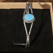 Silver Cuff Bracelet Native American Style Turquoise Oval Stone Handmade Sz 5-6  additional preview