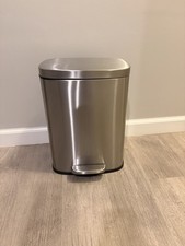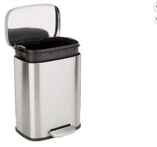 Silver Matte Metal Step On Trash Can with Removable Lid, Modern, Medium