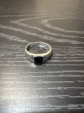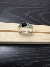 Silver Men's Band Ring Black Square Onyx Stone Bezel Setting