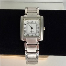 Elegant silver watch featuring a rectangular face with Roman numerals. Quartz movement for precise timekeeping. Not tested Likely needs a battery 9 inches