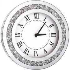 Silver Round Mirror Clock 12inch Crystal Sparkle Twinkle Bling Pure