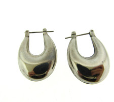 Silver tone puff oval hoop earrings in .75x1 inches, for pierced ears, very good condition.