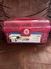The Singer Sewers Companion Box 174 is a spool and bobbin storage box designed for sewing enthusiasts. Made of durable pink plastic, this product from the trusted brand Singer is perfect for organizing your spools of thread and bobbins in an attractive and functional way. With its compact size, this companion box is ideal for keeping your sewing tools neat and easily accessible during your projects. NIB sealed
