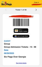 SIX FLAGS OVER GEORGIA ONE DAY GENERAL PARKING PASS E-TICKET E-DELIVERY