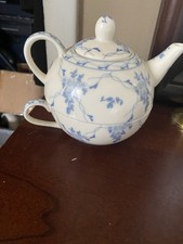 Skye McGhie Rose Brocade Blue And White Stackable Teapot. Great condition
