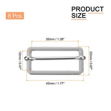 Slide Buckle, 8Pcs 1 3/8" - Metal Triglides Slider, Rectangle Keeper (Silver)