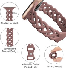 Slim Silicone Bands for Apple Watch Band 40mm 38mm 41mm 42mm 44mm 45mm 49mm Braided Lace Thin Wristbands for SE Series 8 7 6 5 4 3 2 1, Black/Starlight/Violet Smoke/Sand Pink. Compatible with Apple Watch models 38mm, 40mm, 41mm, 42mm, 44mm, 45mm, and 49mm.