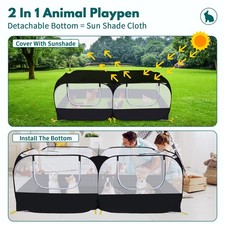2.Installation-free: No complicated assembly is required, the pet playpen automatically pop-up while you open it, and it can be fixed outdoors with the 8 ground nails provided. 【New Generation】 The bottom of the pet playpen can be removed, so that the small animals are closer to nature when used outdoors.