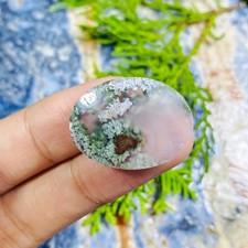 Small Natural Moss Agate Oval Cabochon Scenic Dendritic Pattern 26x19x5mm